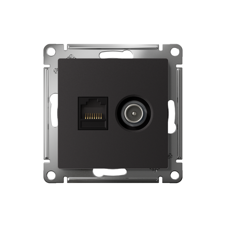Механизм Systeme Electric (ранее Schneider Electric) серии AtlasDesign в цвете карбон двойной розетки разъёмами RJ45 категории 5е и TV предназначен для удобного и быстрого подключения вашего компьютера и телевизора к соответствующим сетям. Лицевые детали из качественного ABS-пластика, устойчивого к царапинам и УФ-излучению. Благодаря покрытию «soft touch» к изделию приятно прикасаться. Усиленные прямые монтажные лапки для лучшей фиксации механизма в монтажной коробке.