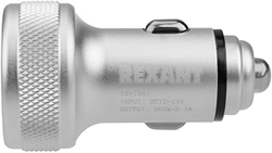 Зарядное устройство 2 х USB Rexant 18-1947 (1000 мА + 2100 мA) в прикуриватель, с led дисплеем, серебро