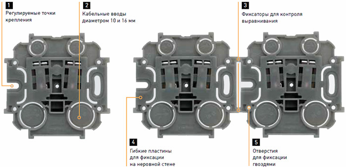 - Крепление корпуса выключателя на защелках.