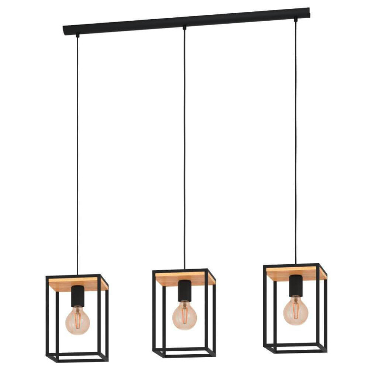 Светильник подвес 3*40Вт E27 черный/св.дерево геометрический Лофт