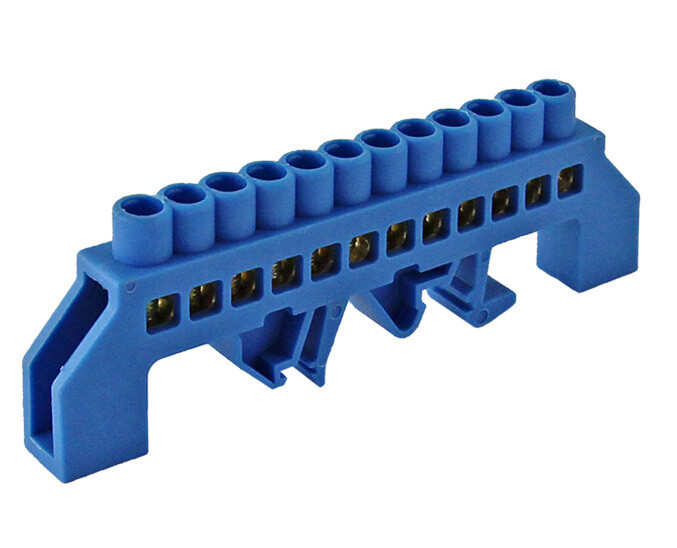 Шина нулевая 8*12 12групп комбинированный DIN-изолятор типа "Стойка" синий винтовой на DIN-рейку IEK