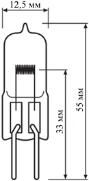 Вольфрамовая галогенная низковольтная диммируемая лампа HLX с колбой в форме капсулы, без отражателя.