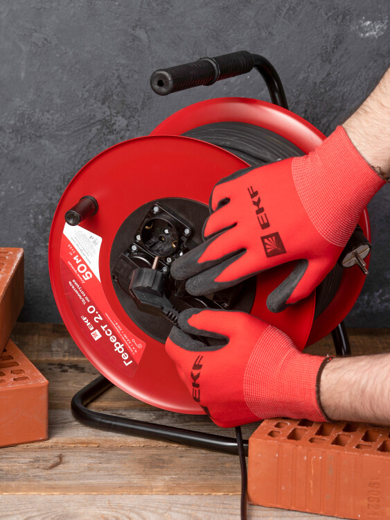Удлинитель 4-мест 50м КГ 3*2,5 красный катушка металл IP44 EKF аналог9887511