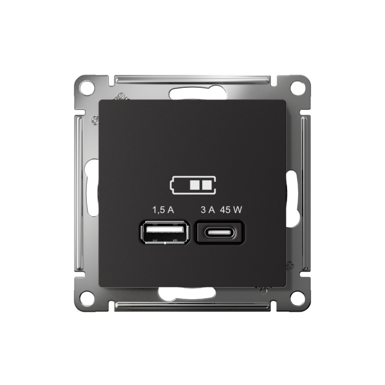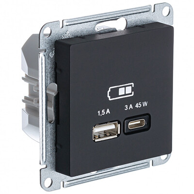 Розетка USB тип А (1,5 А) + тип C (3 А, 45 Вт) Schneider Electric ATN001029 AtlasDesign (высокоскор.заряд QC, PD), карбон