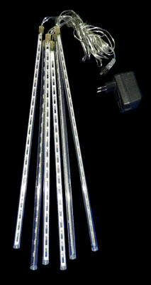 "Тающими сосульками" можно украшать высотные ели и деревья, они очень красивы под карнизами зданий, фантастически смотрятся на фоне световых занавесов на фасадах зданий.