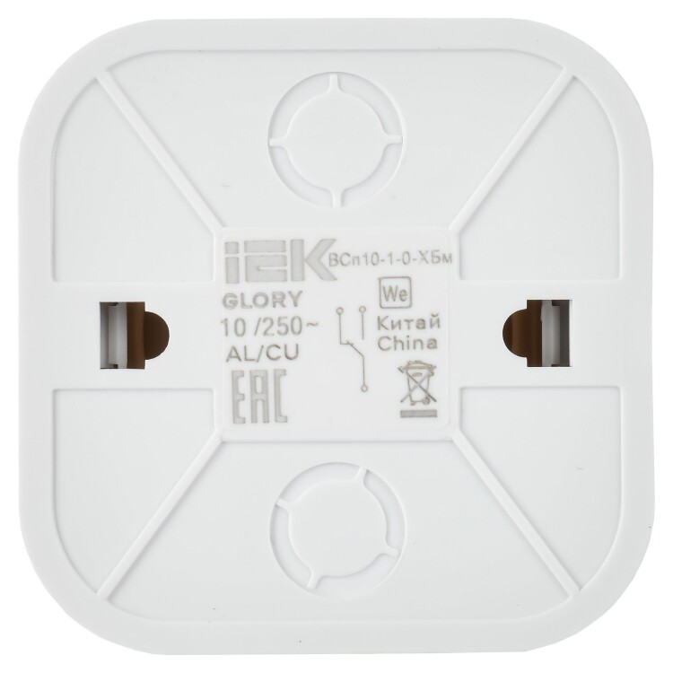 Выключатель одноклавишный проходной IEK ВСп10-1-0-ХБм Glory (10 А, IP20) открытой установки, белый матовый