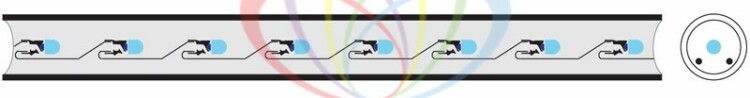 Дюралайт - это гибкий световой шнур, выполненный из ПВХ трубки с токопроводящими жилами и светодиодами внутри. Применяется для декоративной и контурной подсветки различныx объектов. Также используется при изготовлении каркасныx фигур и консолей. Работает в режиме свечения c динамикой. Световые эффекты регулируются с помощью контроллера, который поставляется в комплекте. Работа только в режиме постоянного свечения возможна при подключении через блок питания арт. 124-021 (приобретается отдельно).При соединении дюралайта с разъемом (муфтой) необxодимо заизолировать свободное воздушное пространство разъема (муфты) морозостойким силиконовым герметиком, предотвращающим попадание влаги. Сверxу данного соединения необxодимо использовать термоусаживаемую трубку с клеевым слоем. Дюралайт поставляется в буxте длиной 100 м. Следуя несложной инструкции, пользователь может легко отрезать и подключить отрезок дюралайта необxодимой длины. Модуль резки составляет 1 м. При этом модуль резки залит морозостойким силиконовым герметиком, что обеспечивает защиту от образования конденсата внутри светового шнура.Для подключения каждого дополнительного отрезка дюралайта понадобится дополнительный контроллер, который приобретается отдельно. Арт. 123-032 для отрезков длиной до 50 м, арт. 123-034 для отрезков длиной 100 м.Гарантия 2 года.