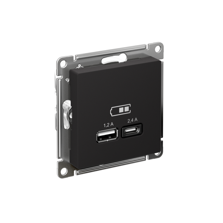 Розетка USB А+С Systeme Electric ATN001039 AtlasDesign (5 В / 2400 мА, 2 х 5 В / 1200 мА) скрытой установки, карбон