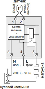 - Соединительные провода нагрузки подключаются к клемме 5 и к нулевому кпеммнику (в комплект не входит).