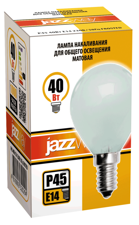 Лампа шар накал Е14 40Вт 350лм G45 матовый Jazzway