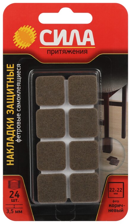 Подкладки самоклеящ.войлочные д/мебели квадрат корич. (24шт)