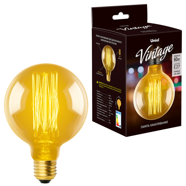 IL-V-G95-60/GOLDEN/E27 VW01 Лампа накаливания Vintage. Форма «шар». Форма нити VW. Картон. ТМ Uniel