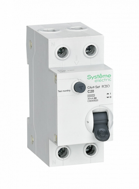 Автоматические выключатели дифференциального тока (АВДТ) серии City9 Set Systeme Electric,1P+N, номинальный ток 20 А, характерис тика С, Icn = 4.5 кА, ток утечки 30 мА, тип А. АВДТ применяется в электрических сетях напряжением 230В. Предназначен для защиты сети от перегрузок, людей от поражения электрическим током и токов короткого замыкания. Уставка по току утечки 30 мА обеспечивает гарантированную защиту людей при прямом прикосновении. Кнопка тест обеспечивает проверку работоспособности аппарата. Крепление на DIN-рейку шириной 35 мм. Безопасные клеммы.
