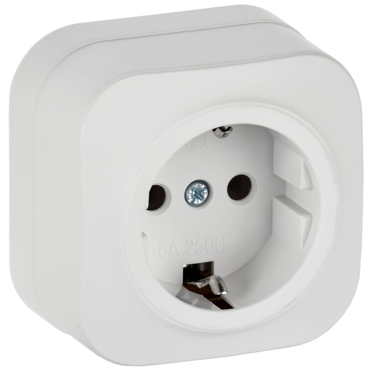 Розетка одноместная IEK РС20-3-ХБм Glory (16 А, IP20) открытой установки, с заземлением, белый матовый