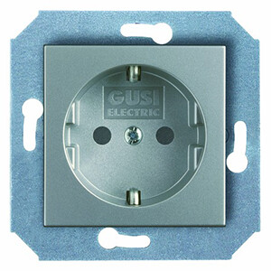 Механизм розетки одноместной с боковым заземляющим контактом и узлом защиты от проникновения серии City электроустановочных изделий Gusi Electric.