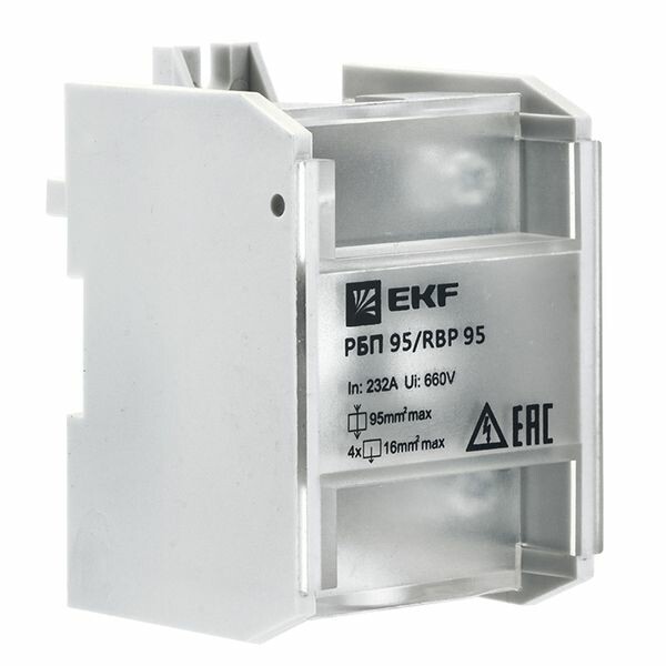 РБП EKF PROxima предназначен для ответвлений от магистральных линий медных и алюминиевых проводов напряжением до 660 В, с предварительным снятием изоляции на месте установки, без разрезания проводника. Позволяет подключить до 4 отходящих линий