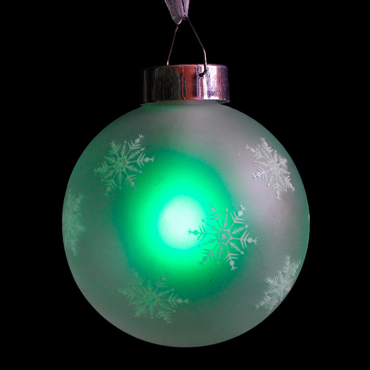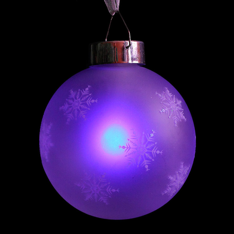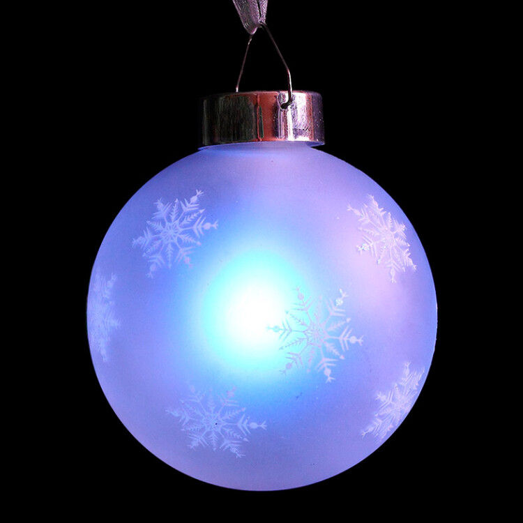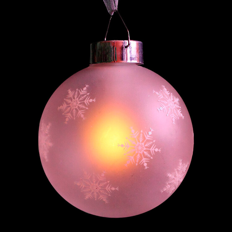Подвеска "Шар" из розового матового стекла с новогодним орнаментом, с разноцветной светодиодной подсветкой для праздничного оформления интерьеров квартир и офисов.