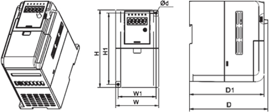 | Входы аналоговые | 1 аналоговый вход VF1 может служить в качестве входа напряжения (0 - 10 В) или тока (0/4 ~ 20 мA) |