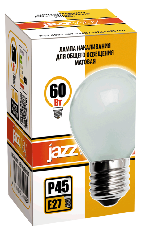 Лампа шар накал Е27 60Вт 550лм G45 матовый Jazzway