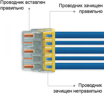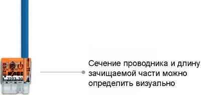 - На каждой клемме нанесена разметка длины зачистки проводников.