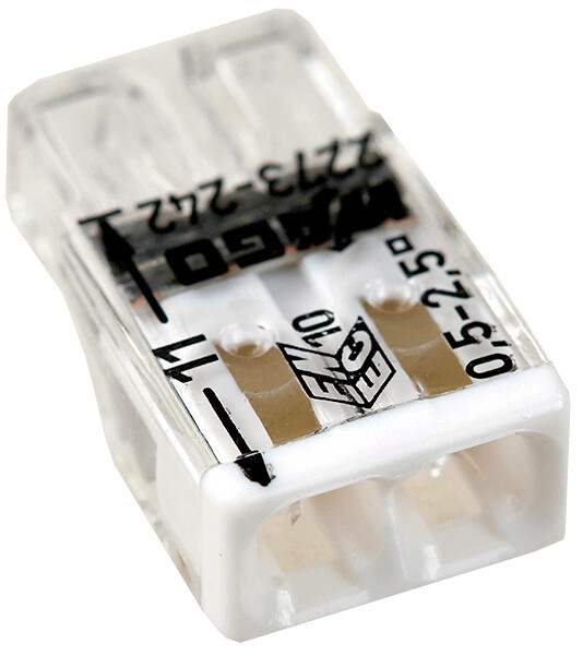 Компактные клеммы Wago серии 2273 со специальной контактной пастой Alu-Plus предназначены для подключения одножильных медных или алюминиевых проводников.