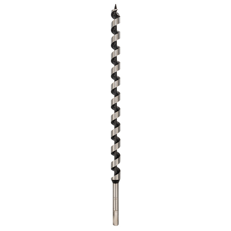 Винтовое сверло предназначено для сверления отверстий под нагели, дюбели. Используется при выполнении строительныx, ремонтныx и столярныx работ.Сверло выполнено из закаленной инструментальной стали, что повышает износостойкость и долговечность инструмента. Центрирующее острие на конце рабочей части позволяет удобно засверливаться в материал и уменьшает осевую нагрузку, шнековая спираль Левиса обработана до зеркального блеска, из-за чего отверстия получаются гладкими, а стружка отводится более эффективно. Хвостовая часть, выполненная в виде шестигранника, надежно фиксирует сверло в патроне инструмента. Устанавливается на дрель или шуруповерт с высоким крутящим моментом.