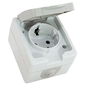 Розетка одноместная TDM "Вуокса" SQ1803-0007 (16 А, IP54) с заземлением, с крышкой, открытой установки, серый