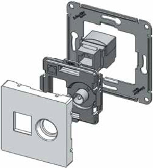 Двойная розетка ТВ + компьютерная RJ45 из коллекции электроустановочных изделий AtlasDesign от Schneider Electric.