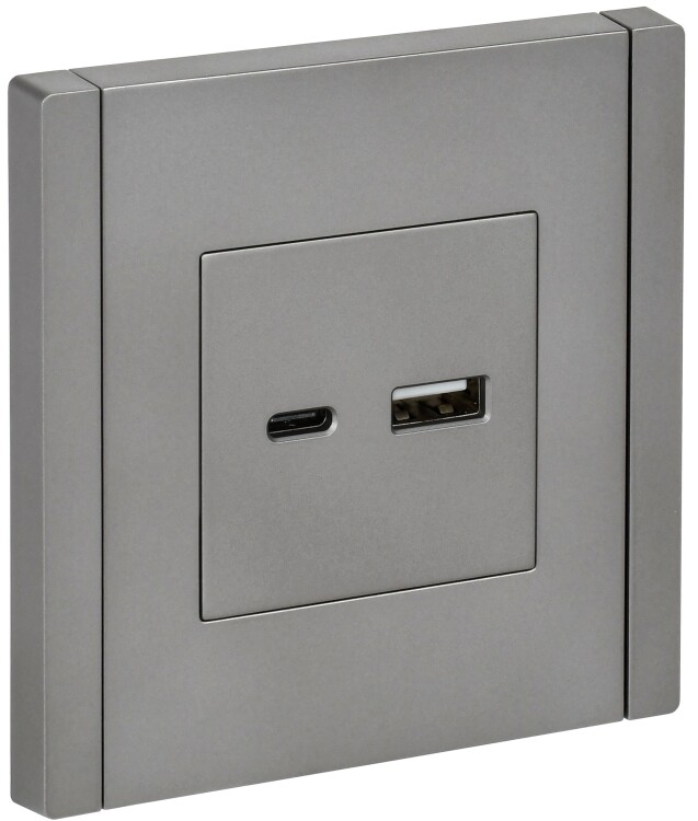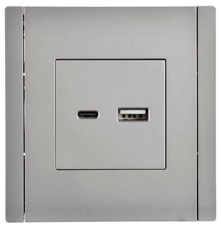 Розетка двойная USB A+C 18 Вт IEK FP551 Forte&Piano (IP20) скрытой установки, сталь