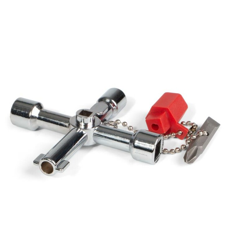 Универсальный, многофункциональный ключ для использования в инженерных системах зданий и транспорта: сантехнических и электрических шкафах, системах вентиляции и кондиционирования воздуха.Количество рабочих профилей ключа: 5 шт.профиль 5/6/8 мм.профиль 9 мм.профиль 35 мм..Двусторонняя бита: PH2/шлиц 7 мм.Адаптер для бит 1/4 на цепочке.Материал ключа: цинковый сплав.Вес: 66 г.Длина: 72 мм.