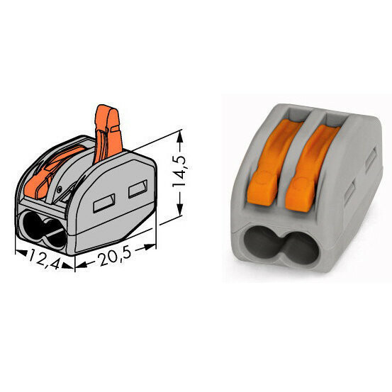 Клемма 2*4,0мм2 с рычажком серый Wago 222-412 50шт