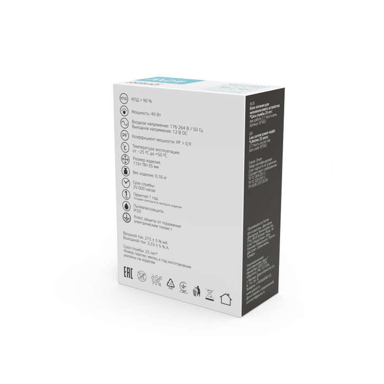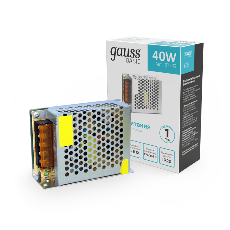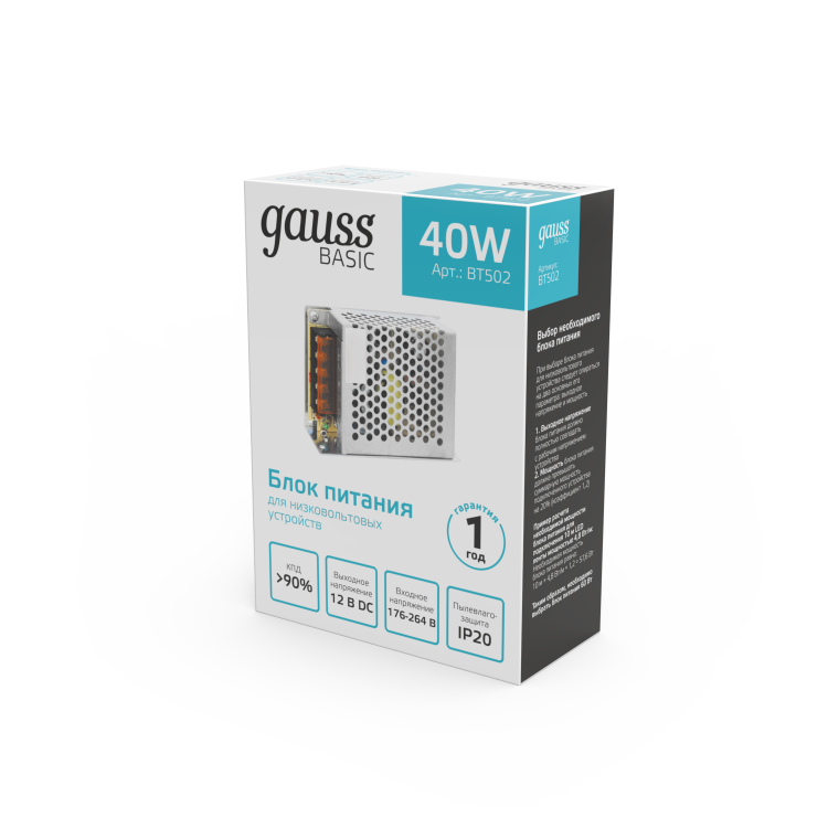 Gauss Basic 12V 40W IP20 1/120 - блок питания, который отвечает самым высоким требованиям к подобным устройствам