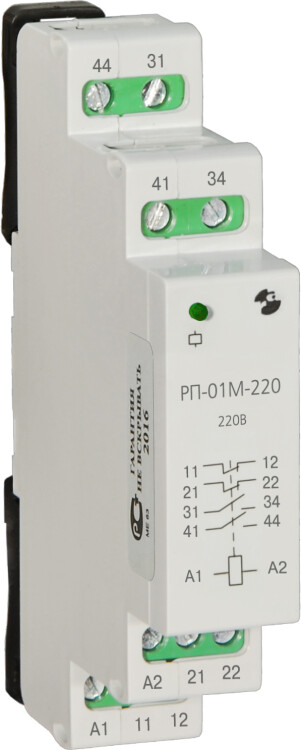 Реле промежуточное РП-01М заменяет широко используемые промежуточные реле РПУ-2, ПЭ-37. Предназначено для коммутации электрических цепей постоянного и переменного тока частоты 50 и 60Гц. Применяется в схемах автоматики как комплектующее изделие. Реле в модульном корпусе с индикацией срабатывания.