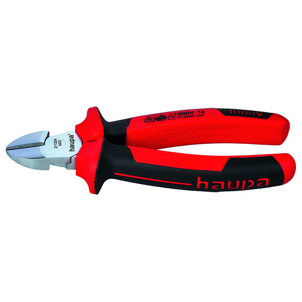 Шведская конфигурация, класс по мощности Н, C 60, закаленные в масле, дополнительно индуктивное закаливание режущих кромок, для мягкой и жесткой проволоки до 200 кгс/мм (N 2000), хромирование, насадная изоляция, с рычажной передачейДвухкомпонентные боковые кусачки DIN 5238 B VDE