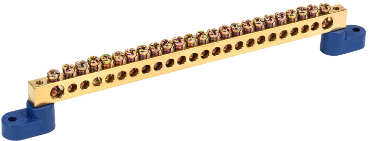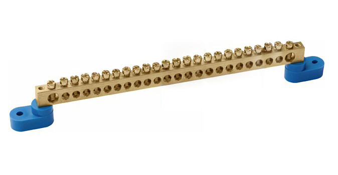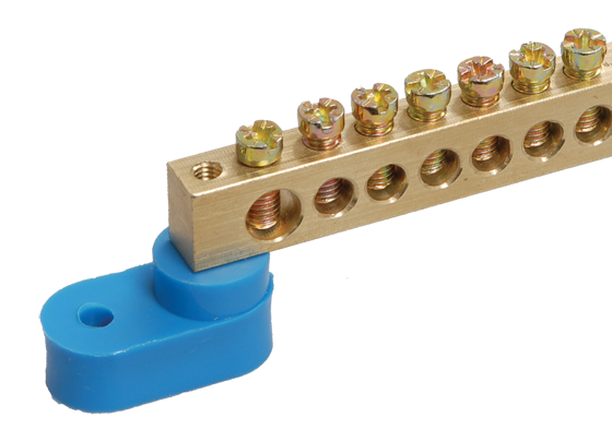 Шина нулевая 8*12 24групп 2 угловых изолятора синий винтовой IEK