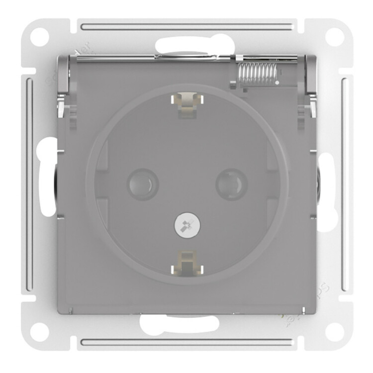 Розетка одноместная Systeme Electric ATN440346 AtlasDesign Aqua (16 А, IP44) скрытой установки, с заземлением и защитными шторками, с крышкой, алюминий