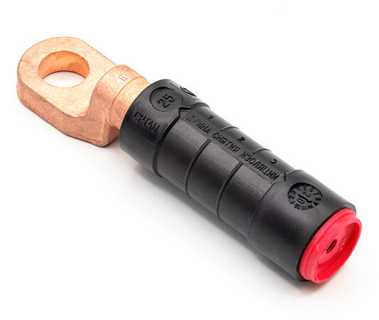 Предназначен для оконцевания провода СИП при выполнении контактного присоединения к электроустановкам. Наконечник фиксируется на токоведущей шине или на вводах электрических устройств. Наконечник предназначен для медных шин. Внутренняя часть заполнена смазкой, благодаря чему обеспечивается герметичность. Клеммы наконечников CPTAU специально адаптированы под российское электрооборудование. Соединение осуществляется методом опрессовки инструментом HT 50, R 22. Используемая матрица - Е 173. Механическая прочность заделки провода составляет 60% прочности провода. Изоляция испытана напряжением 6 кВ в воде. Размер наконечников, соответствующий сечению провода, определяется по цветовой маркировке. Наконечник устойчив к ультрафиолету, перепадам температур (от -60°С до +50°С), коррозии и агрессивным атмосферным воздействиям.