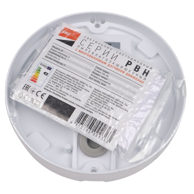 Установка. Крепится на ровные, прочные поверхности. Применяется для внутреннего освещения общественных зданий. Возможно использовать для наружного освещения, при условии, что светильник устанавливается под навесом. Конструкция. Корпус светильника изготовлен из поликарбоната. Светильник оснащен встроенным акустическим датчиком. Датчик автоматически включает и отключает светильник при превышении уровня шумов 45 дБ в зоне чувствительности. Рассеиватель полупрозрачный поликарбонат. Встроенный драйвер входит в комплект поставки.Индекс цветопередачи: Ra 80.Частота: 50-60 Гц. Коэффициент пульсации: 5%. Коэффициент мощности: cos 0,5. Угол детектирования: 360. Дальность срабатывания: 36 м. Длительность освещения: 4060 с. Климатическое исполнение: УХЛ2. Светильники, предназначенные для установки непосредственно на поверхности из нормально воспламеняемых материалов. Тип сенсора: акустический. Форма: круг.
