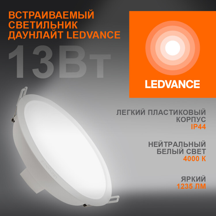 Даунлайт свд ДЛ-165 круг 13Вт 4000К 1235лм белый IP44 DL G2 Ledvance пластик