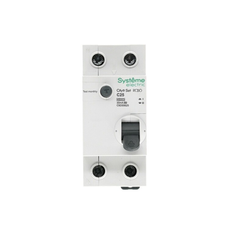 Автоматические выключатели дифференциального тока (АВДТ) серии City9 Set Systeme Electric,1P+N, номинальный ток 25 А, характерис тика С, Icn = 4.5 кА, ток утечки 30 мА, тип А. АВДТ применяется в электрических сетях напряжением 230В. Предназначен для защиты сети от перегрузок, людей от поражения электрическим током и токов короткого замыкания. Уставка по току утечки 30 мА обеспечивает гарантированную защиту людей при прямом прикосновении. Кнопка тест обеспечивает проверку работоспособности аппарата. Крепление на DIN-рейку шириной 35 мм. Безопасные клеммы.