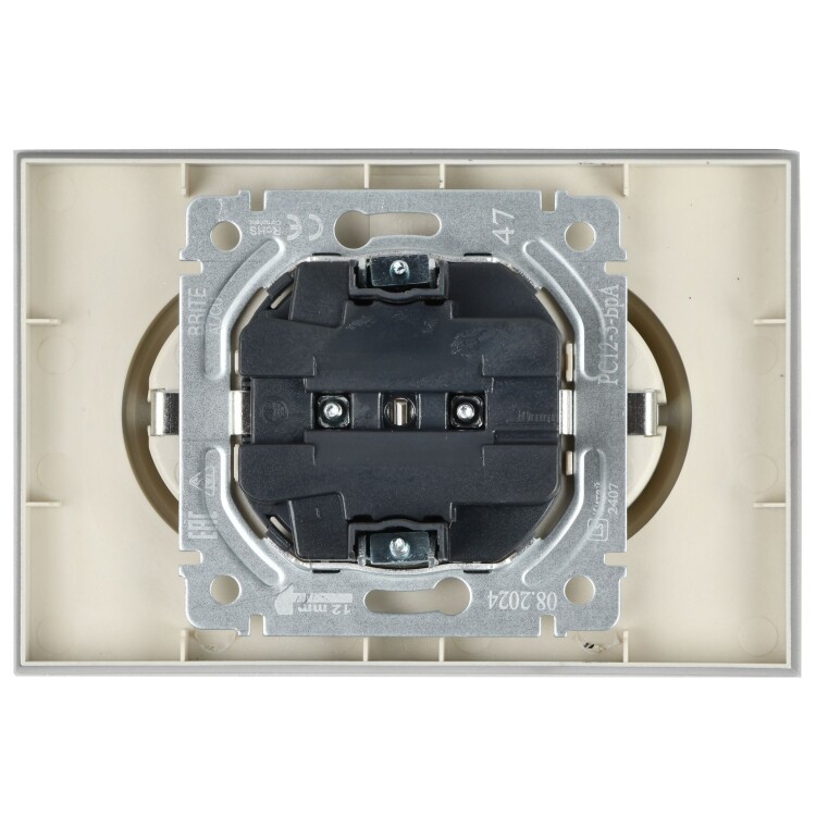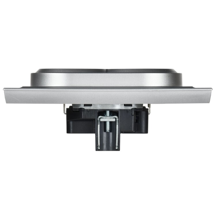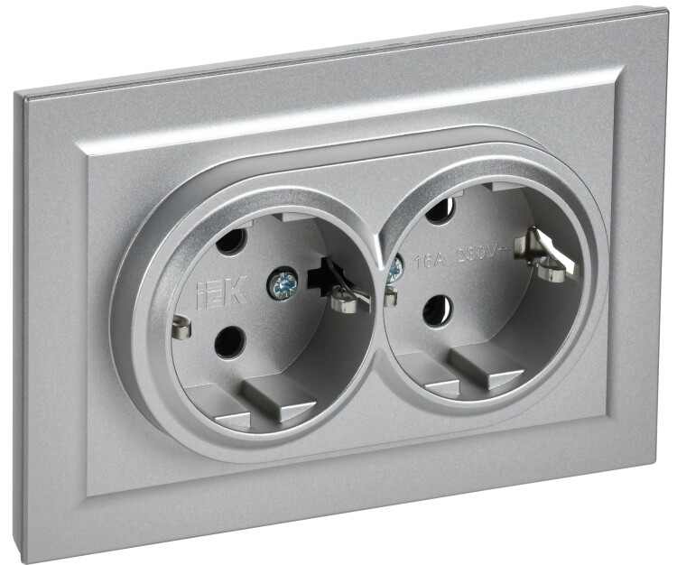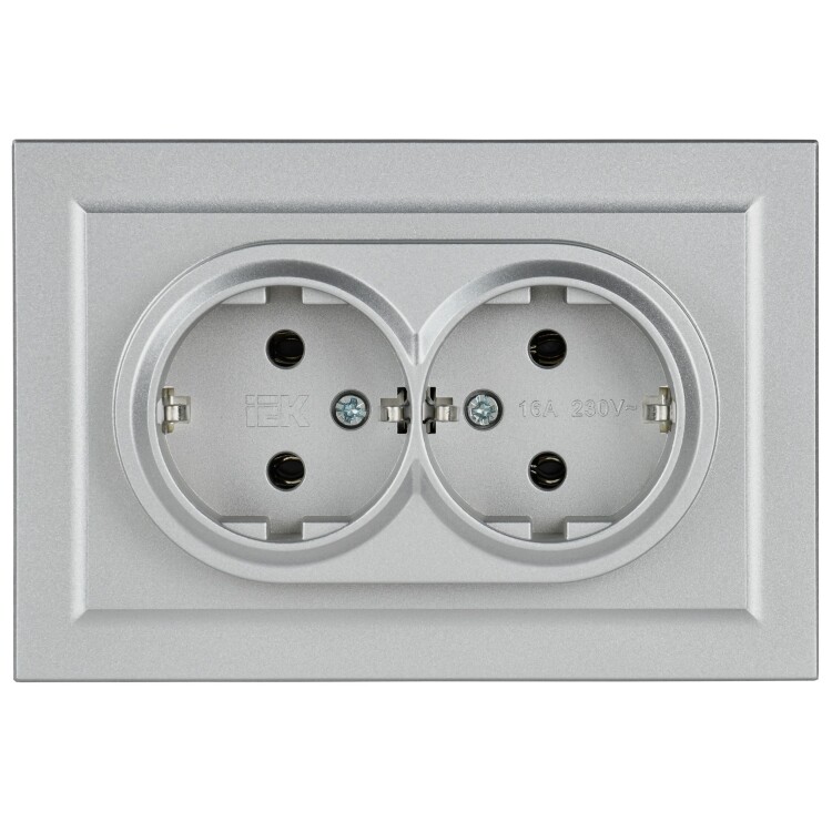 Розетка двухместная IEK РС12-3-БрА Brite (16 А, IP20) скрытой установки, с заземлением, в сборе, алюминий