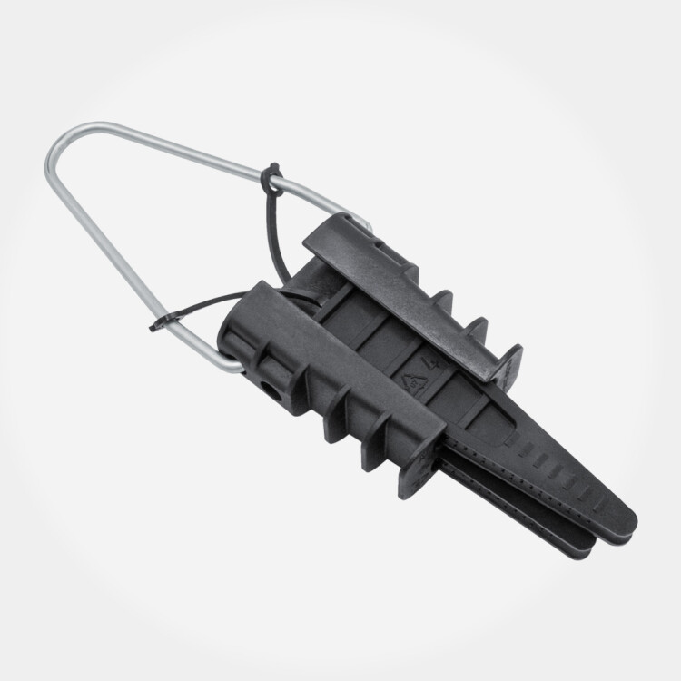 Предназначен для анкерного крепления 4-жильного провода СИП-4 ответвлений сечением 16-25 мм2 от магистрали к вводам. Зажим обеспечивает надежную фиксацию и удержание проводов путём натяжения при монтаже воздушных линий электропередач. Крепится на опорах или стенах с помощью крюков и кронштейнов. Установка зажима производится благодаря наличию скобы. Изготовлен из диэлектрического материала, выполняет изолирующую функцию. Подвижные клинья выполнены с особым рельефом, надежно фиксирующим проводник, не повреждая изоляцию. Скоба зажима съемная, для ее быстрой и надежной фиксации предусмотрено по два отверстия с каждой стороны. Зажим не требует монтажного инструмента. Обладает высокой прочностью, устойчивостью к ультрафиолету, коррозии, воздействию экстремальных температур, влажности и другим погодно-климатическим факторам.