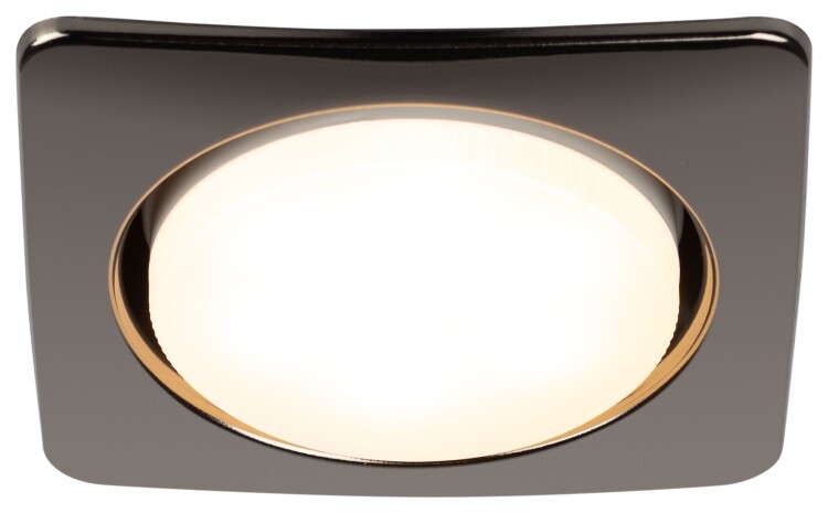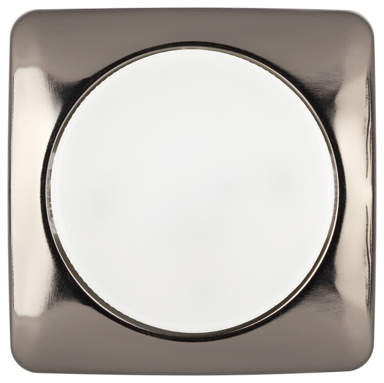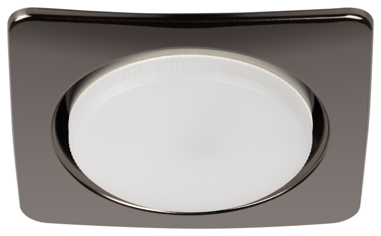 Корпус выполнен из алюминия и стекла. Размеры: внешний – 107 мм, монтажный – 90 мм. Подходит лампа GX53 мощностью до 15 Вт, термокольцо в комплекте. Доступен монтаж на любые потолки, а также на стены.