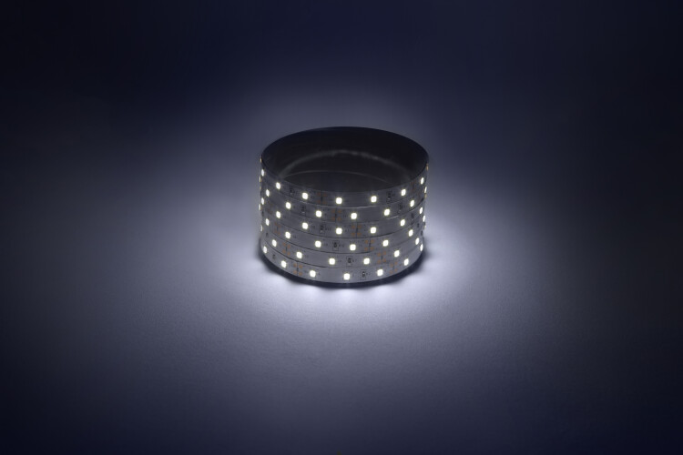 В составе комплекта: LED лента на двустороннем скотче, источник питания, коннекторы. Рабочее напряжение ленты составляет 12В, а мощность равна 4,8 Вт/м. Светодиодная лента обладает световым потоком 280 Лм/м, и цветом свечения - холодный белый (6500 K)