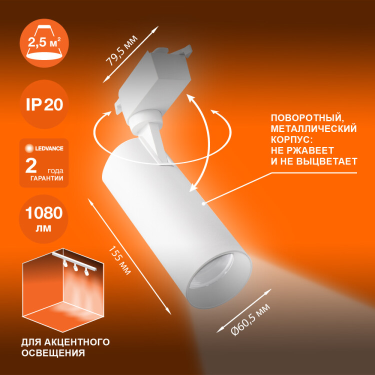 Светильник на трек однофазный свд 12Вт 4000К 1080лм белый Ledvance