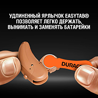 Батарейки Duracell для слуховых аппаратов с ярлычком EasyTab различаются по цвету, поэтому выбрать батарейку подходящего размера очень просто.