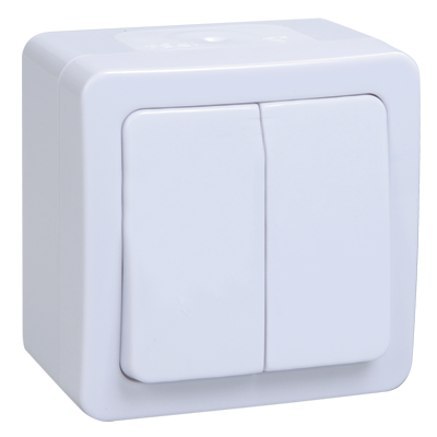 Выключатель двухклавишный ВС20-2-0-ГПБ "Гермес Plus" (IP54) открытой установки, белый