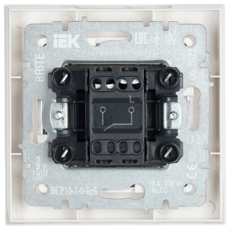 Выключатель IEK серии электроустановочных изделий Brite предназначен для скрытой установки внутри помещений.