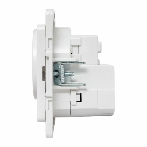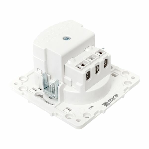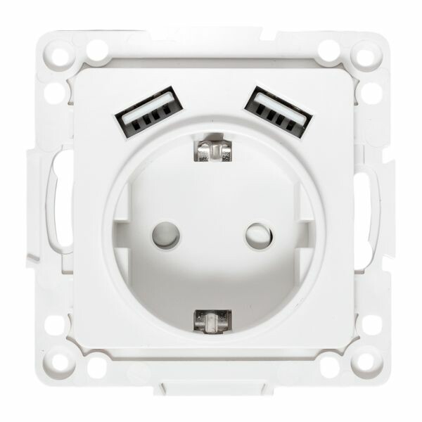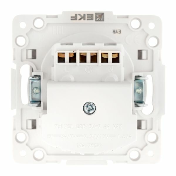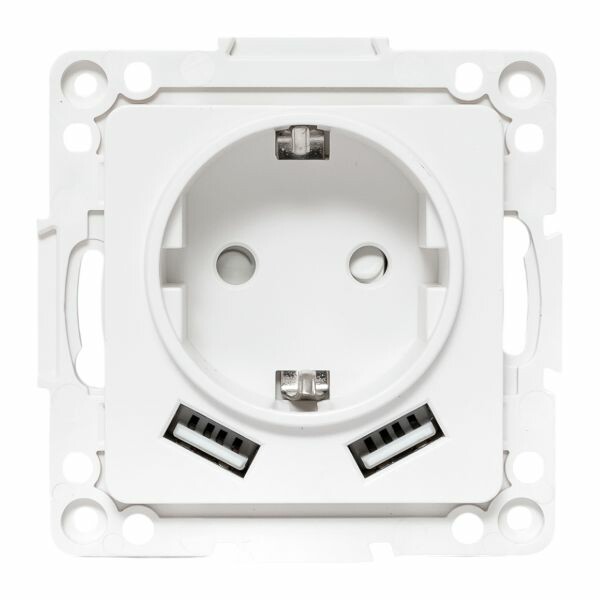 Розетка одноместная EKF EYR16-2USB-typeA "Стокгольм" (16 А, IP20, винтовые клеммы, 2 х USB тип А) скрытой установки, с заземлением и защитными шторками, белый
