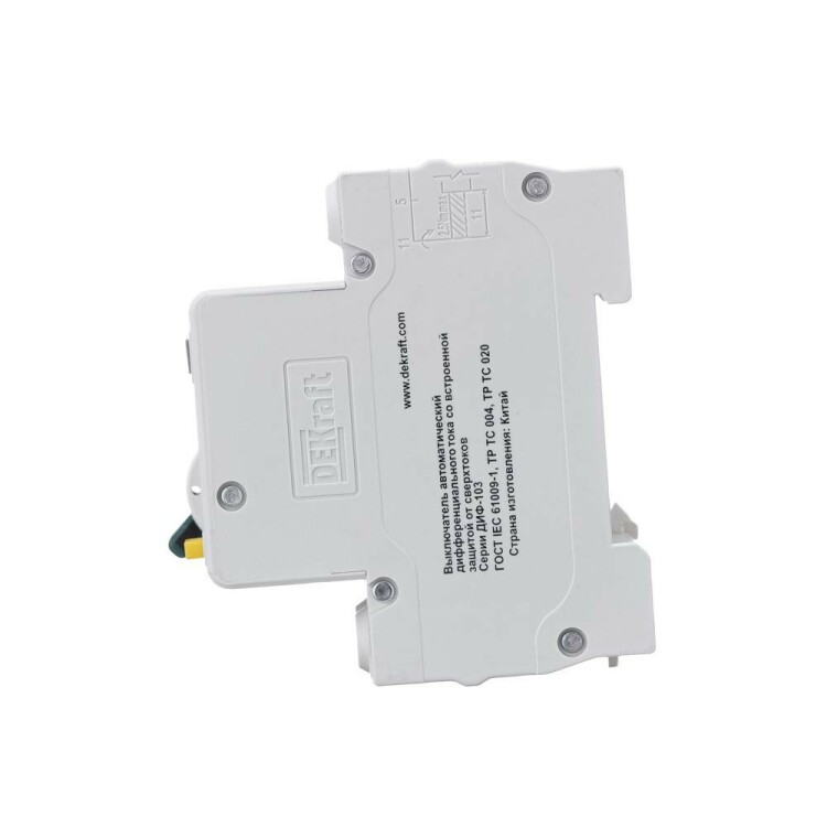 Автоматическими выключателями дифференциального тока серии ДИФ-103 DEKraft; 1N+P; номинальный ток 40 А; ном.дифф. ток 30 мА; тип дифференциального расцепителя - AC; кривая отключения - С; на DIN-рейку.